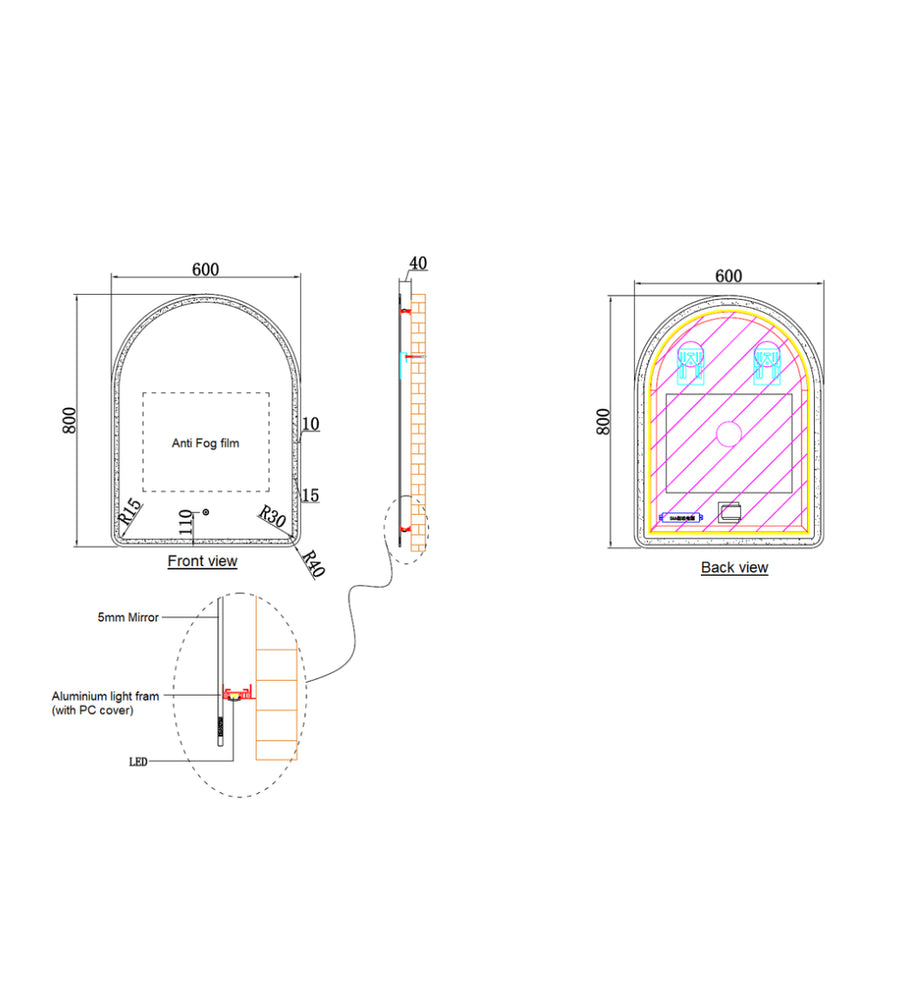 Ablaze Premium Back Lit Oval Mirror 500x1000